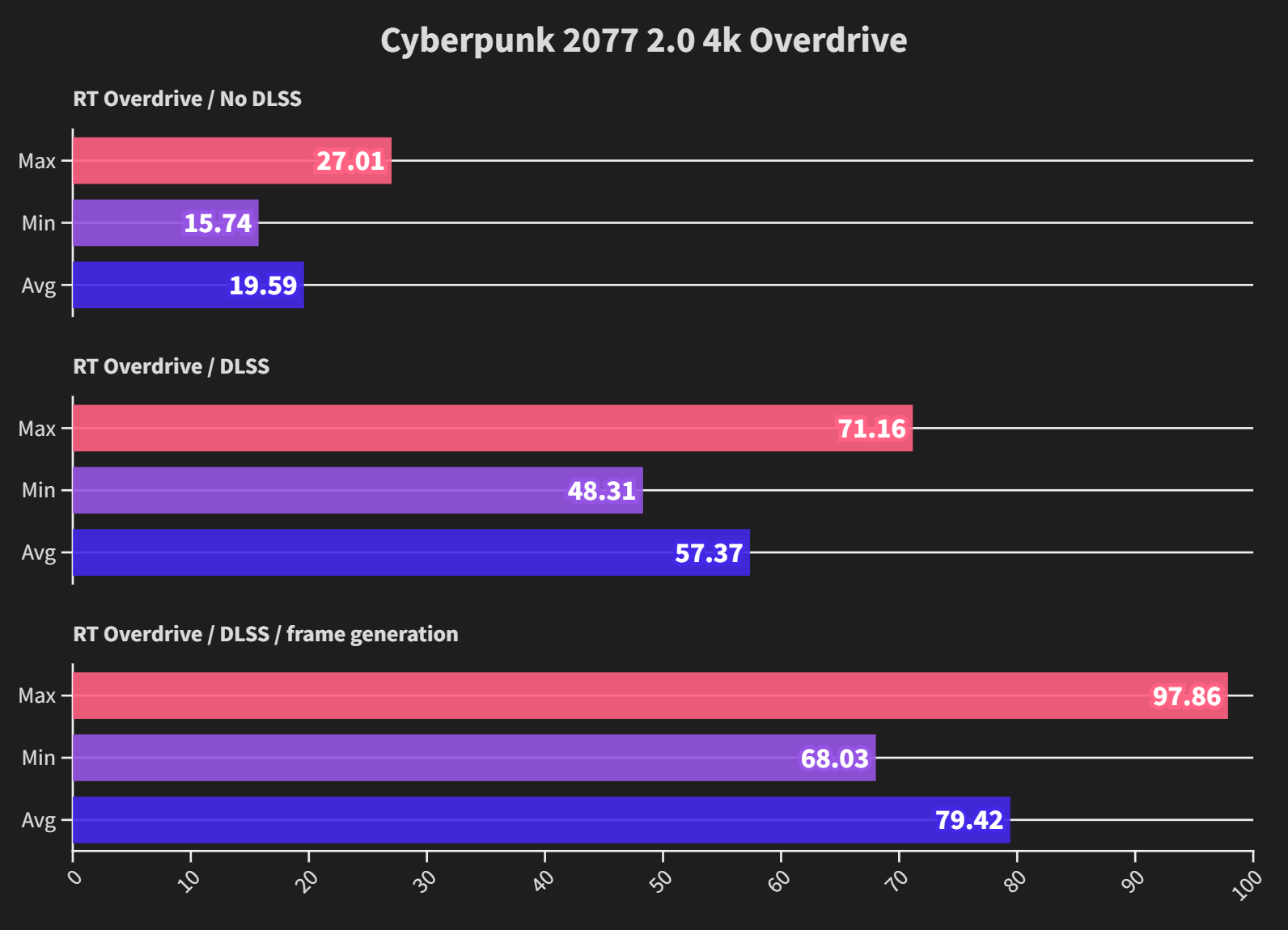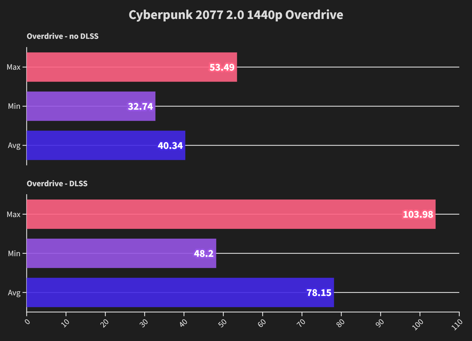Cyberpunk at 1440p RT Overdrive is still quite challenging, but it becomes very playable with just DLSS on, rather than needing frame generation.
