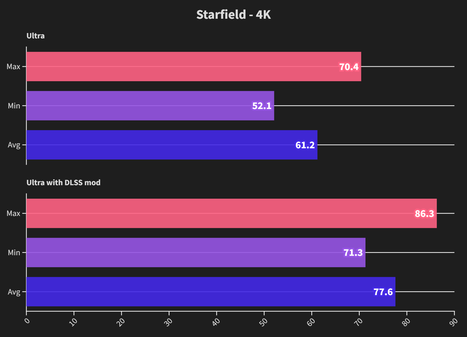 I think Starfield is an interesting game to look at, especially as its AMD sponsored (ruined by AMD?) which means it may pose more of a challenge to a 4090 that is power limited than perhaps it would if the game was actually optimised for Nvidia cards. Additionally it does not support DLSS out of the box, but can be modded to do so. This particular mod also supports frame generation, so certainly take those benchmarks with a pinch of salt, depending on your opinion of FG.